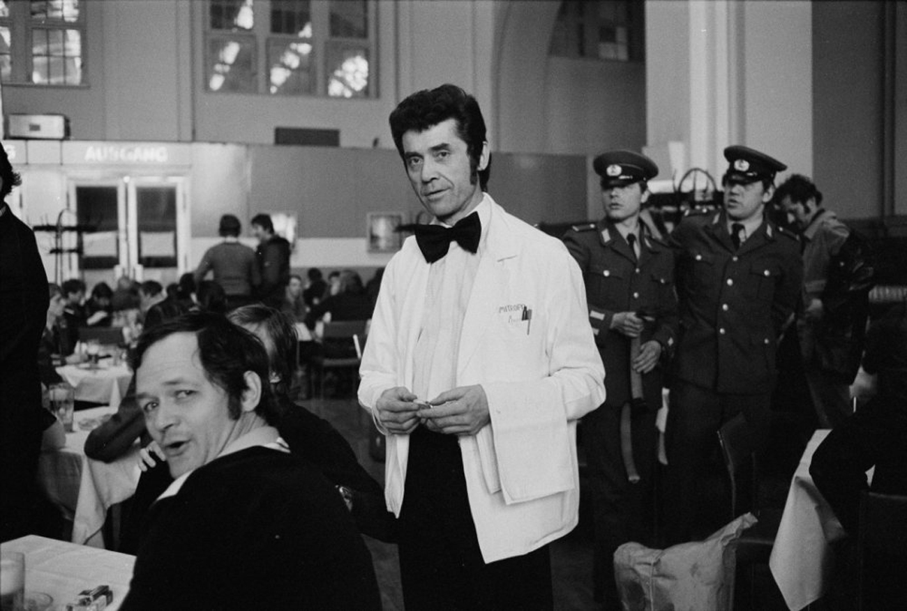 Τη διετία 1981-1982, η Paris ταξίδευε συχνά στη Λειψία με το τραίνο. Το εστιατόριο Mitropa, στο κεντρικό σιδηροδρομικό σταθμό με την ερειπωμένη αρτ νουβό διακόσμηση, ήταν το δεύτερο σπίτι για τους φοιτητές, τους στρατιώτες του NVA (Εθνικού Λαϊκού Στρατού) και τους επαγγελματίες κάθε είδους που ταξίδευαν. Στις ατέλειωτες ώρες της αναμονής στο σταθμό από τις συχνές καθυστερήσεις των τραίνων, η Paris φωτογράφιζε τους ταξιδιώτες να σέρνουν κατάκοποι τις βαλίτσες τους, αλλά και τους επαγγελματίες του χώρου: Έναν κύριο με πουκάμισο με λαχούρια πίσω από τον γκισέ, να πουλάει λαχειοφόρους λαχνούς, μια μεσόκοπη κυρία με κατάλευκη στολή, έξω από τις γυναικείες τουαλέτες, τις ζαχαροπλάστισσες πίσω από τις προθήκες με τα γλυκά. Από όλους όμως τους ανθρώπους που σύχναζαν ή εργαζόντουσαν στο αλαλούμ του Hauptbahnhof της Λειψίας και τους οποίους είχε φωτογραφίσει η Paris, ξεχωρίζει ένας εμφανίσιμος σερβιτόρος, που φορά ένα τεράστιο, πολύ αστείο παπιγιόν. Η Helga, τον απεικόνισε μαεστρικά, με τρόπο τόσο τρυφερό όσο και πρωτότυπο, που η φωτογραφία ξεχειλίζει από ποιητική θλίψη. Για την αιωνιότητα.